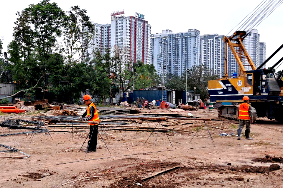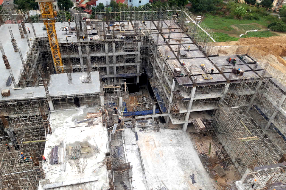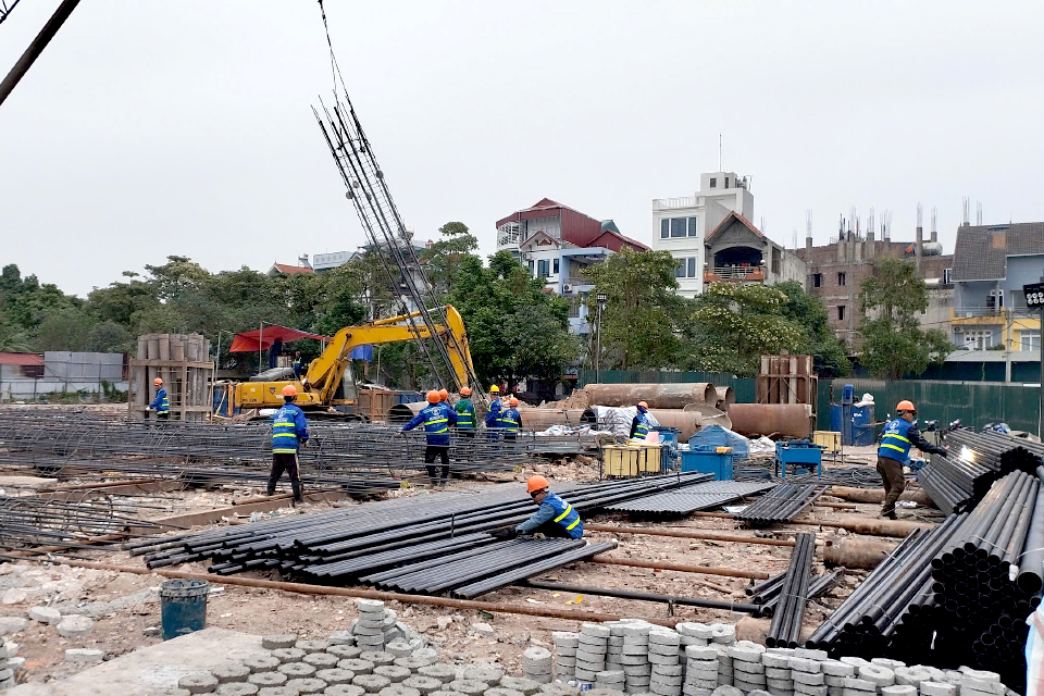 Trên công trường thi công Dự án Tổ hợp văn phòng làm việc và nhà ở cho thuê số 5 Thành Công, Ba Đình, Hà Nội