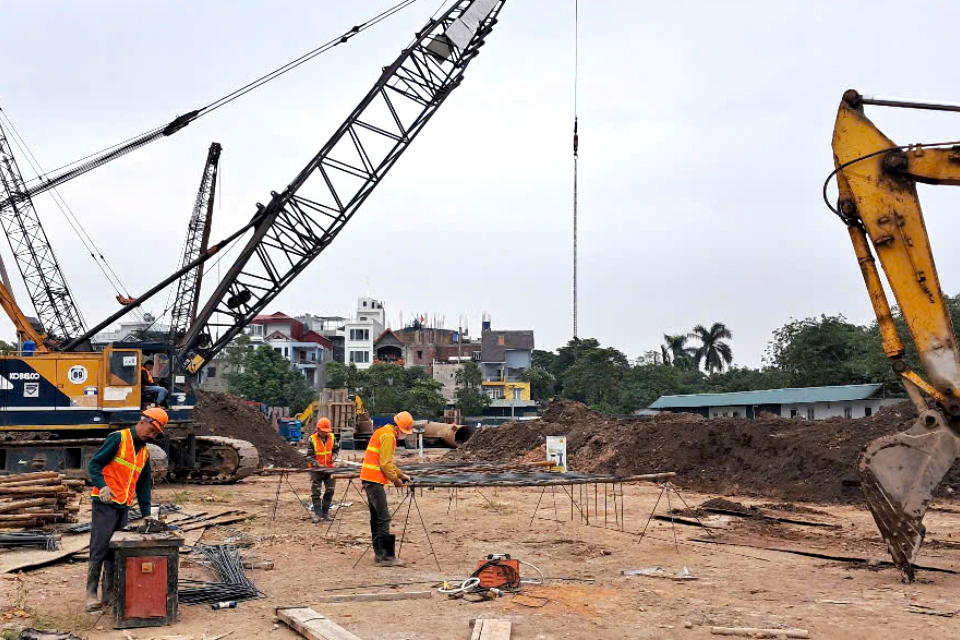 Tại công trình thi công Trung tâm hành chính huyện Đông Anh