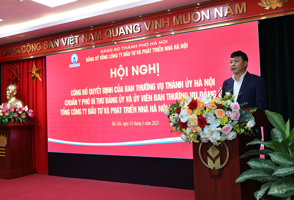Theo đó, tại Quyết định số 471-QĐ/ĐU-TCT ngày 07/3/2025, Ban Thường vụ Đảng ủy Tổng công ty chỉ định bổ sung đồng chí Ngô Minh Tuấn - Ủy viên Ban Thường vụ Đảng ủy, Chủ nhiệm UBKT Đảng ủy, Thành viên HĐTV, Phó Tổng giám đốc, Chủ tịch Công đoàn Tổng công ty tham gia Ban chấp hành Đảng bộ, Ban Thường vụ Đảng ủy Cơ quan Tổng công ty Đầu tư và Phát triển nhà Hà Nội giữ chức Bí thư Đảng ủy, nhiệm kỳ 2020-2025.