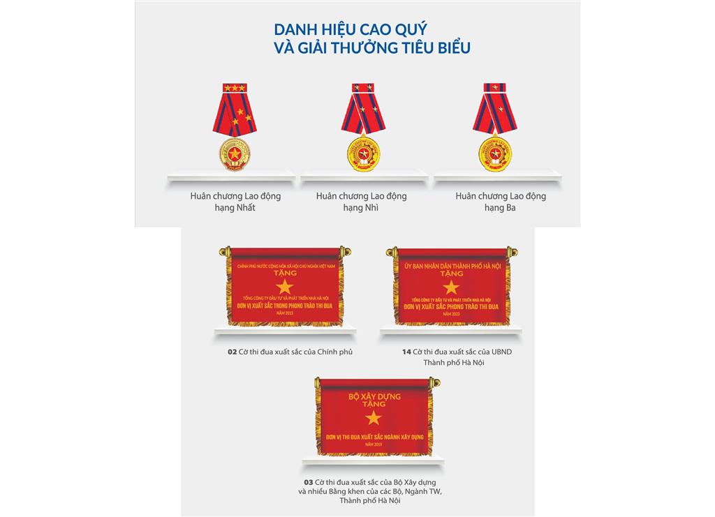 Với những kết quả đã đạt được trong những năm qua, Tổng công ty luôn được ghi nhận và đánh giá cao; được Đảng và Nhà nước tặng thưởng Huân chương lao động Hạng Nhất, Hạng Nhì, Hạng Ba; 02 Cờ thi đua xuất sắc của Chính phủ, 14 Cờ thi đua xuất sắc của Ủy ban nhân dân Thành phố Hà Nội, 03 Cờ thi đua xuất sắc của Bộ Xây dựng và nhiều Bằng khen của các Bộ, Ngành Trung ương và Thành phố Hà Nội, giải thưởng Sao Vàng đất Việt, Cúp Thăng Long…