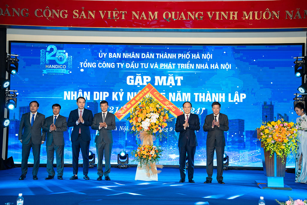 (HANDICO) - Ngày 20/9/2024, tại tòa nhà HANDICO TOWER, Tổng công ty Đầu tư và Phát triển nhà Hà Nội (HANDICO) đã tổ chức gặp mặt nhân dịp kỷ niệm 25 năm xây dựng và phát triển. Tới dự có các đồng chí Nguyễn Ngọc Tuấn – Phó Bí thư Thành ủy, Chủ tịch HĐND thành phố Hà Nội; đồng chí Dương Đức Tuấn - Ủy viên Ban Thường vụ Thành ủy, Phó Chủ tịch UBND Thành phố Hà Nội; đồng chí Lưu Ngọc Hà – Bí thư Quận ủy Bắc Từ Liêm; các đồng chí nguyên lãnh đạo Tổng công ty qua các thời kỳ; các đồng chí trong ban lãnh đạo Tổng công ty và các đơn vị thành viên trực thuộc Tổng công ty.