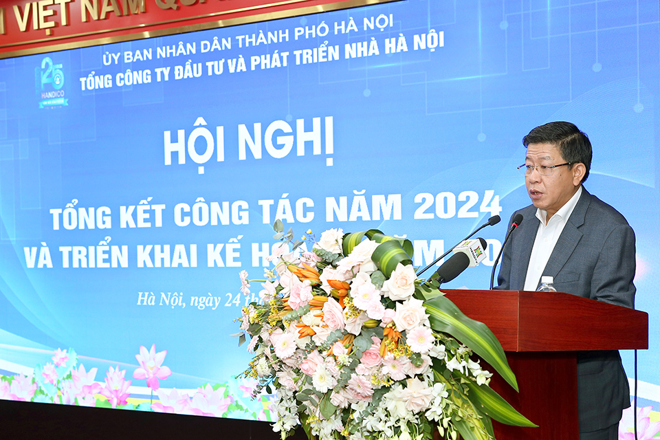 Phát biểu tại Hội nghị, đồng chí Dương Đức Tuấn - Ủy viên Ban Thường vụ Thành ủy, Phó Chủ tịch UBND Thành phố Hà Nội biểu dương Tổng công ty Đầu tư và Phát triển nhà Hà Nội đã nỗ lực hoàn thành vượt mức các chỉ tiêu kế hoạch SXKD năm 2024 đề ra, với các chỉ tiêu chính như giá trị SXKD, doanh thu, nộp ngân sách, lợi nhuận đều đạt cao so với kế hoạch. Nhiều công trình, dự án trọng điểm được tập trung chỉ đạo triển khai bảo đảm tiến độ, chất lượng. Công tác quản lý vận hành sau đầu tư cũng được thực hiện tốt tại các tòa nhà, khu chung cư, góp phần ổn định, nâng cao cuộc sống cộng đồng dân cư.