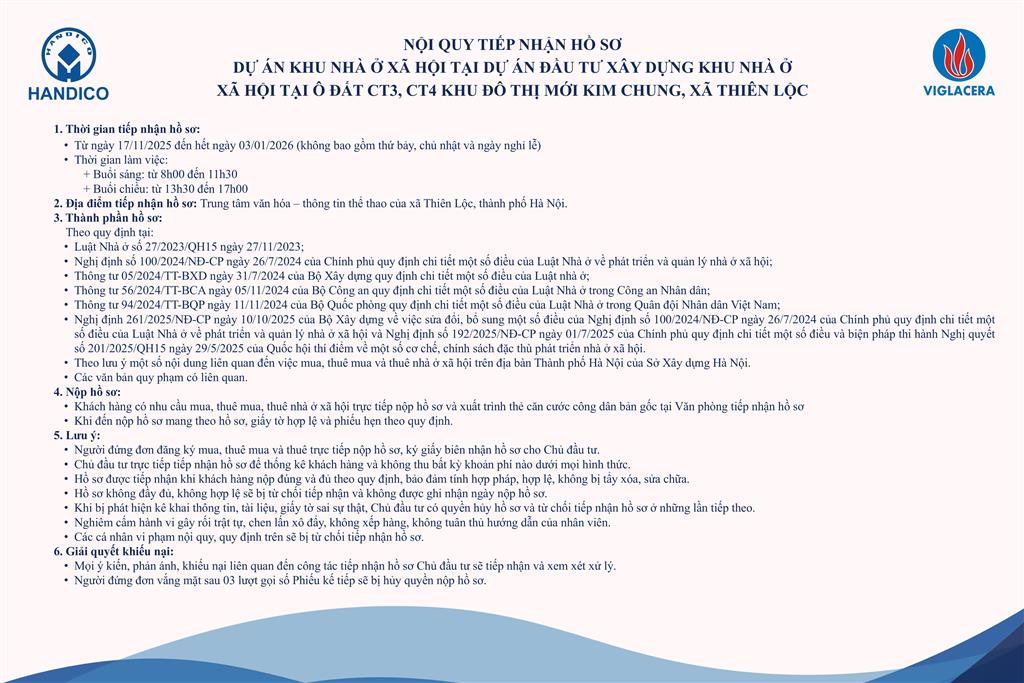 HƯỚNG DẪN HỒ SƠ MUA, THUÊ MUA, THUÊ NHÀ Ở XÃ HỘI của Dự án: Đầu tư xây dựng Khu nhà ở xã hội tại ô đất CT3, CT4 Khu đô thị mới Kim Chung, xã Thiên Lộc, thành phố Hà Nội