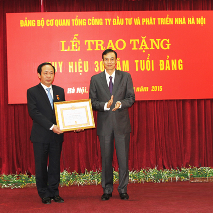 (HANDICO) - Thực hiện Quyết định của số 6672 ngày 16/10/2015 của Thành ủy Hà Nội, Đảng bộ Tổng công ty Đầu tư và Phát triển nhà Hà Nội (HANDICO) đã tổ chức Lễ trao huy hiệu 30 năm tuổi Đảng đợt cho đồng chí Nguyễn Trung Sơn – Bí...