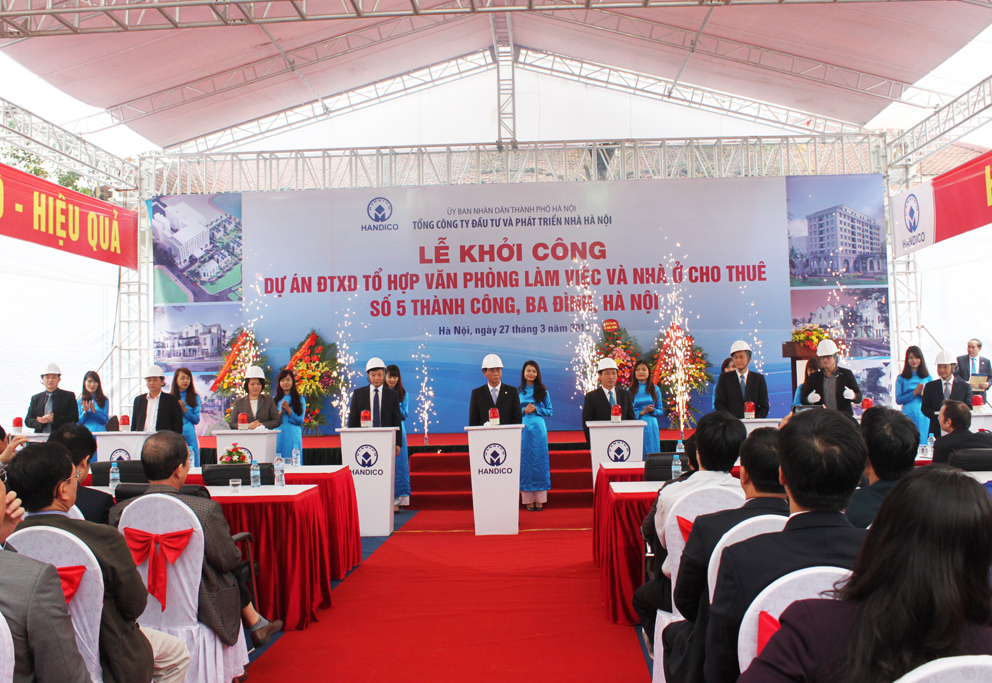 (HANDICO) – Ngày 27/3/2015, Tổng công ty Đầu tư và Phát triển nhà Hà Nội (HANDICO) tổ chức Lễ khởi công dự án đầu tư xây dựng Tổ hợp văn phòng và nhà ở cho thuê tại số 5 Thành Công, Ba Đình, Hà Nội.