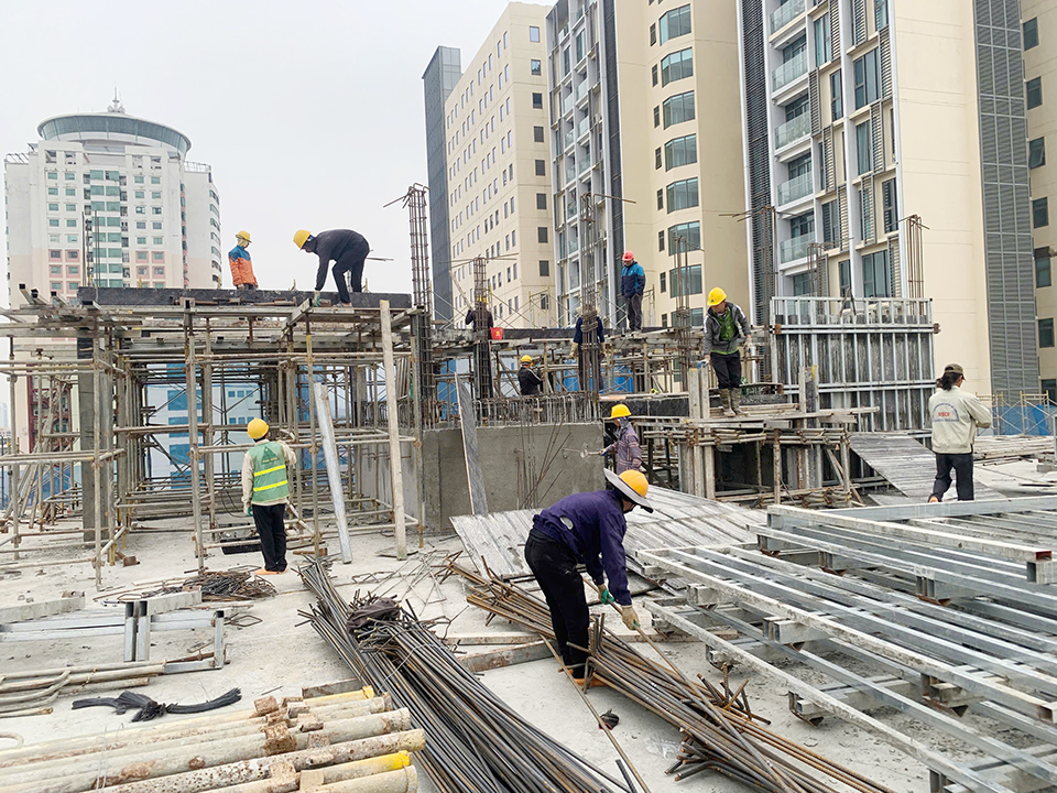 Trên công trường thi công Dự án Tổ hợp văn phòng làm việc và nhà ở cho thuê số 5 Thành Công, Ba Đình, Hà Nội