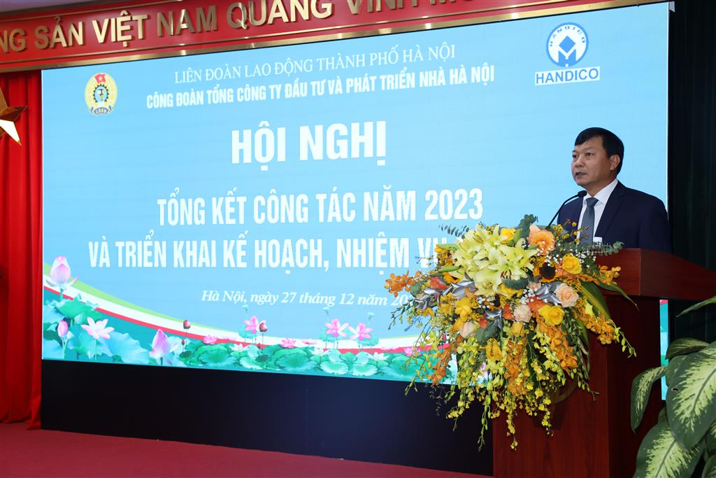 Phát biểu chỉ đạo tại Hội nghị, đồng chí Nguyễn Huy Khánh - Phó Chủ tịch Liên đoàn Lao động Thành phố đã ghi nhận, biểu dương những kết quả đã đạt được của các cấp HANDICO trong năm 2023, đồng thời đề nghị trong thời gian tới, tổ chức Công đoàn cần tiếp tục thực hiện có hiệu quả công tác chăm lo, cải thiện đời sống, bảo vệ quyền, lợi ích chính đáng của đoàn viên, người lao động. Đổi mới công tác tuyên truyền, tập trung vào cuộc vận động xây dựng nếp sống văn hóa, xây dựng cơ quan, đơn vị. doanh nghiệp văn hóa. Nâng cao chất lượng, tổ chức tốt các phong trào thi đua phù hợp với từng loại hình doanh nghiệp, động viên khen thưởng kịp thời phong trào, nhân rộng các điển hình tiên tiến…
