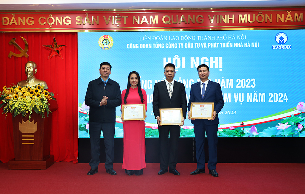 (HANDICO) - Ngày 27/12/2023, Công đoàn Tổng công ty Đầu tư và Phát triển nhà Hà Nội (HANDICO) tổ chức Hội nghị Tổng kết công tác Công đoàn Tổng công ty năm 2023, triển khai kế hoạch, nhiệm vụ năm 2024.