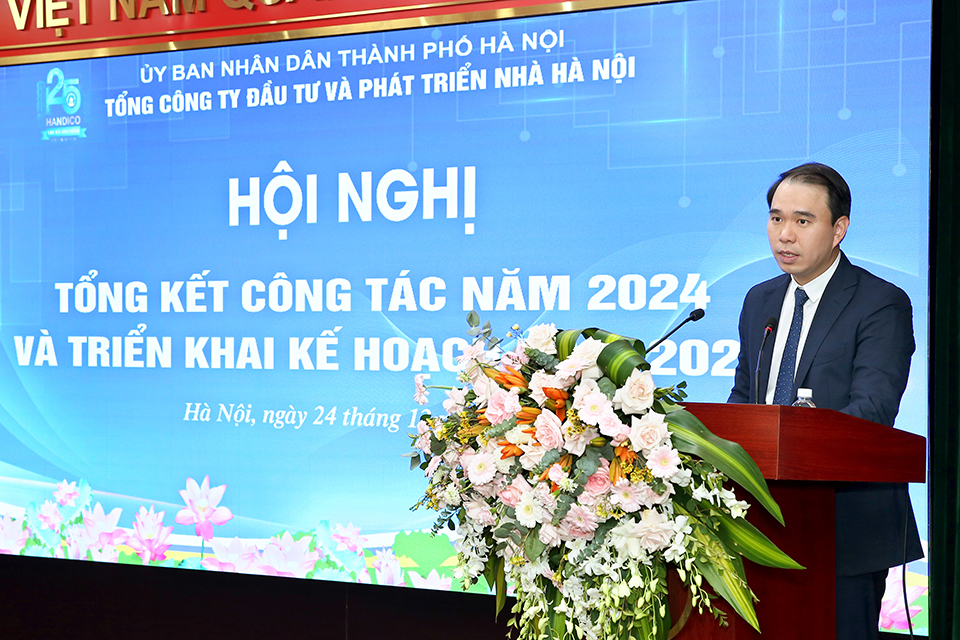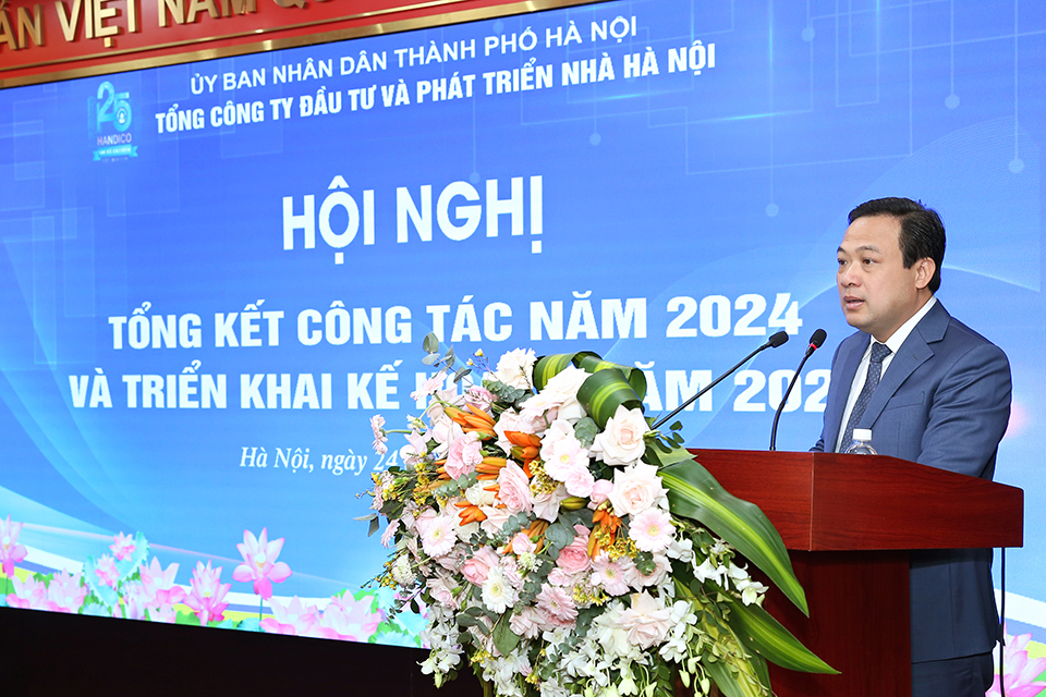 Phát biểu tại Hội nghị, đồng chí Dương Đức Tuấn - Ủy viên Ban Thường vụ Thành ủy, Phó Chủ tịch UBND Thành phố Hà Nội biểu dương Tổng công ty Đầu tư và Phát triển nhà Hà Nội đã nỗ lực hoàn thành vượt mức các chỉ tiêu kế hoạch SXKD năm 2024 đề ra, với các chỉ tiêu chính như giá trị SXKD, doanh thu, nộp ngân sách, lợi nhuận đều đạt cao so với kế hoạch. Nhiều công trình, dự án trọng điểm được tập trung chỉ đạo triển khai bảo đảm tiến độ, chất lượng. Công tác quản lý vận hành sau đầu tư cũng được thực hiện tốt tại các tòa nhà, khu chung cư, góp phần ổn định, nâng cao cuộc sống cộng đồng dân cư.