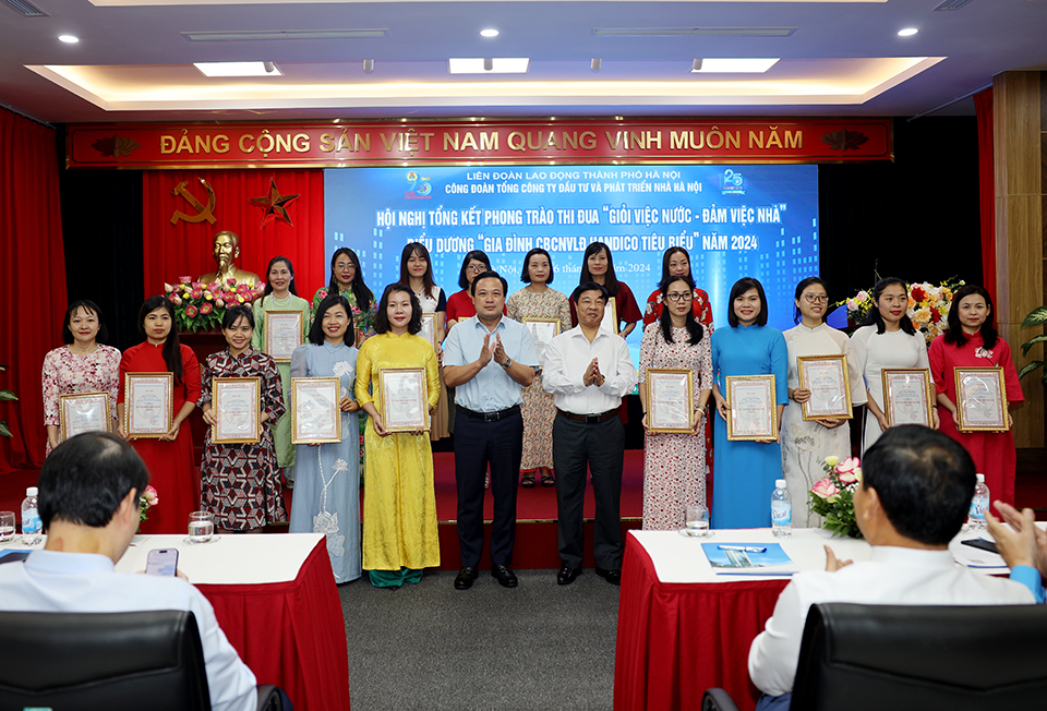 Kết quả, năm 2024, có trên 80% nữ CBCNVLĐ Tổng công ty đạt danh hiệu “Giỏi việc nước - Đảm việc nhà” cấp cơ sở; 33 tập thể, 61 nữ CBCNVLĐ đạt danh hiệu “Giỏi việc nước - Đảm việc nhà” cấp Tổng công ty. Hơn 300 gia đình đạt danh hiệu “Gia đình tiêu biểu” cấp cơ sở, 59 gia đình đạt danh hiệu “Gia đình CBCNVLĐ HANDICO tiêu biểu”, 01 tập thể được Liên đoàn Lao động Thành phố khen thưởng chuyên đề “Giỏi việc nước - Đảm việc nhà” và 01 gia đình đoàn viên Công đoàn đạt danh hiệu “Gia đình CNVCLĐ Thủ đô tiêu biểu”.