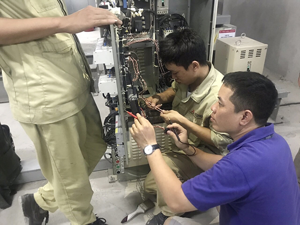 Anh Bùi Đăng Hải kiểm tra và xử lý sự cố hệ thống thang máy tại tòa nhà