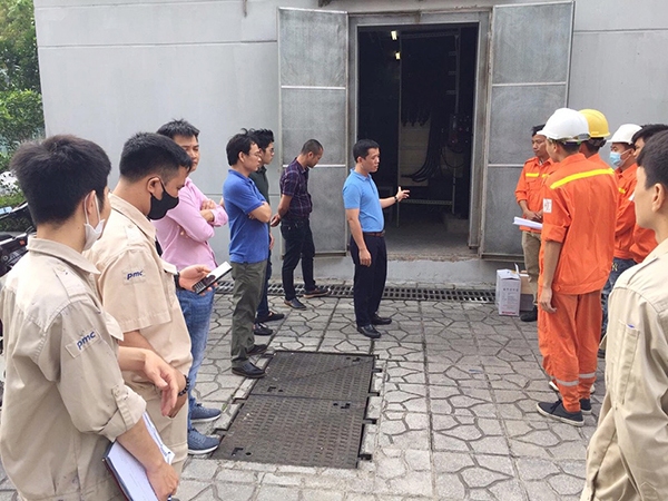 Anh Bùi Đăng Hải hướng dẫn an toàn lao động cho đơn vị bảo trì và kỹ thuật viên trước khi thực hiện công tác bảo trì hệ thống điện, máy phát điện tại tòa nhà
