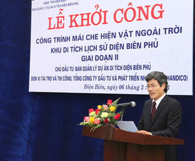 (HANDICO) – Ngày 6/3, UBND tỉnh Điện Biên phối hợp với Tổng công ty Đầu tư và Phát triển nhà Hà Nội (HANDICO) tổ chức Lễ Khởi công Công trình Mái che hiện vật ngoài trời Khu di tích lịch sử Điện Biên Phủ giai đoạn 2.