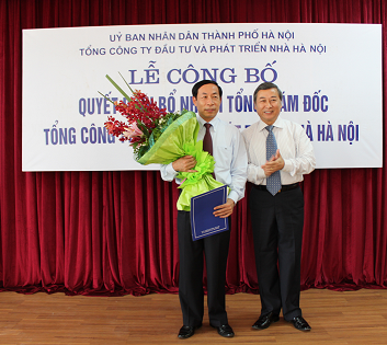 Đ/c Phí Thái Bình - Ủy viên Ban Thường vụ Thành ủy, Phó Chủ tịch thường trực UBND TP Hà Nội trao quyết định cho đ/c Nguyễn Văn Cửu
